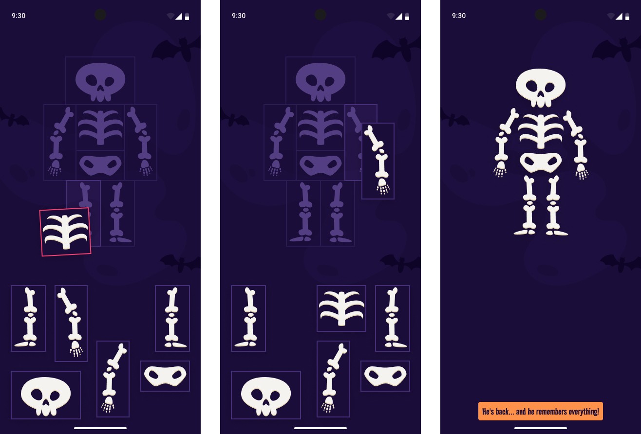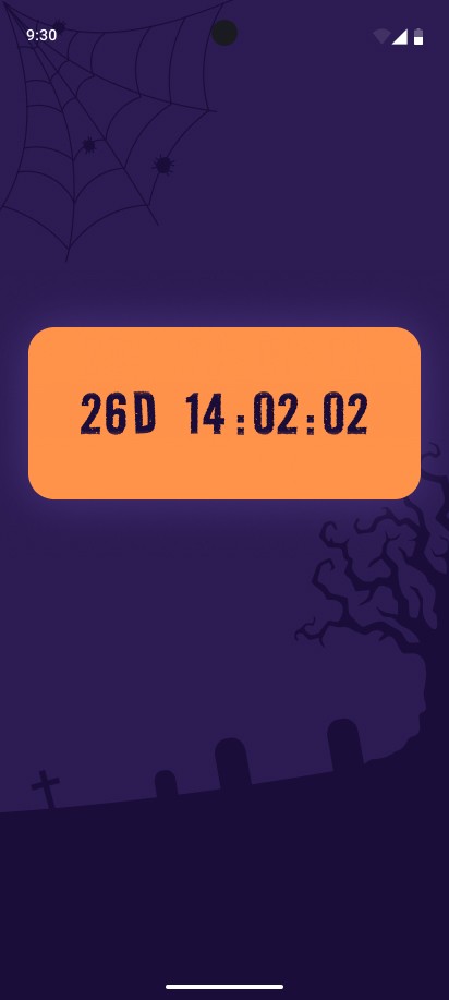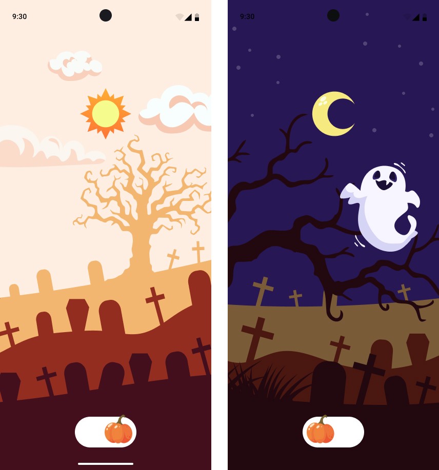 When the app launches, a pumpkin appears, spins, slightly tilts behind the horizon line first to the left, then to the right, performs a final tilt animation, and disappears.
