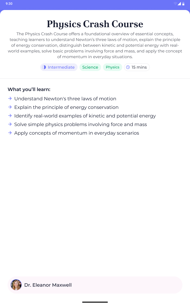 Design a responsive lesson overview screen that adapts its layout gracefully between phone and tablet sizes.